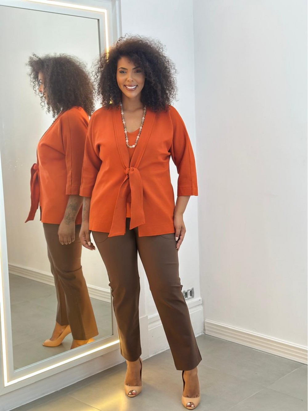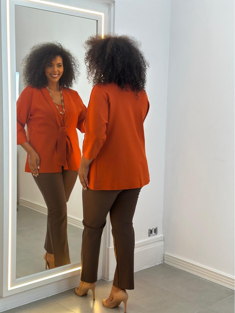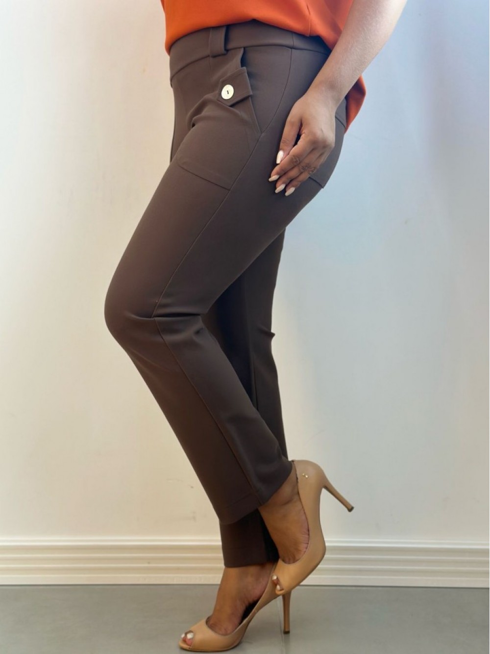 Calça Botão Madre Pérola Malha Encorpada MARROM