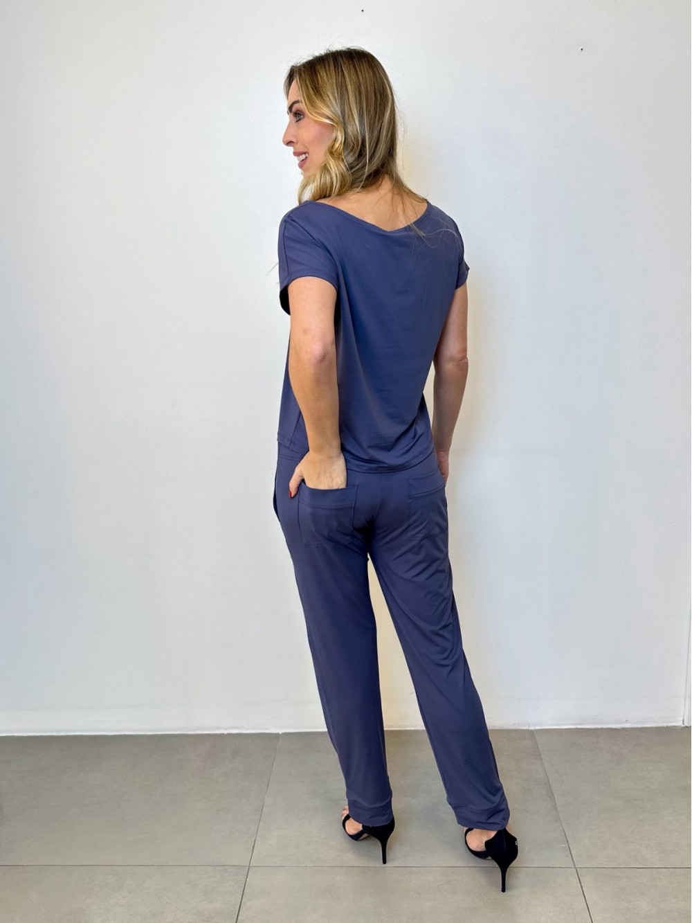 Calça Fluity Sequinha Lisa marinho