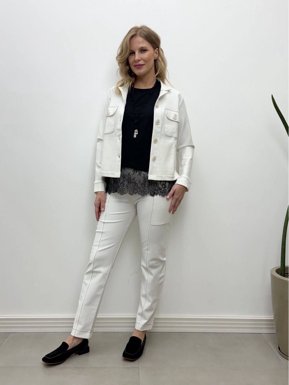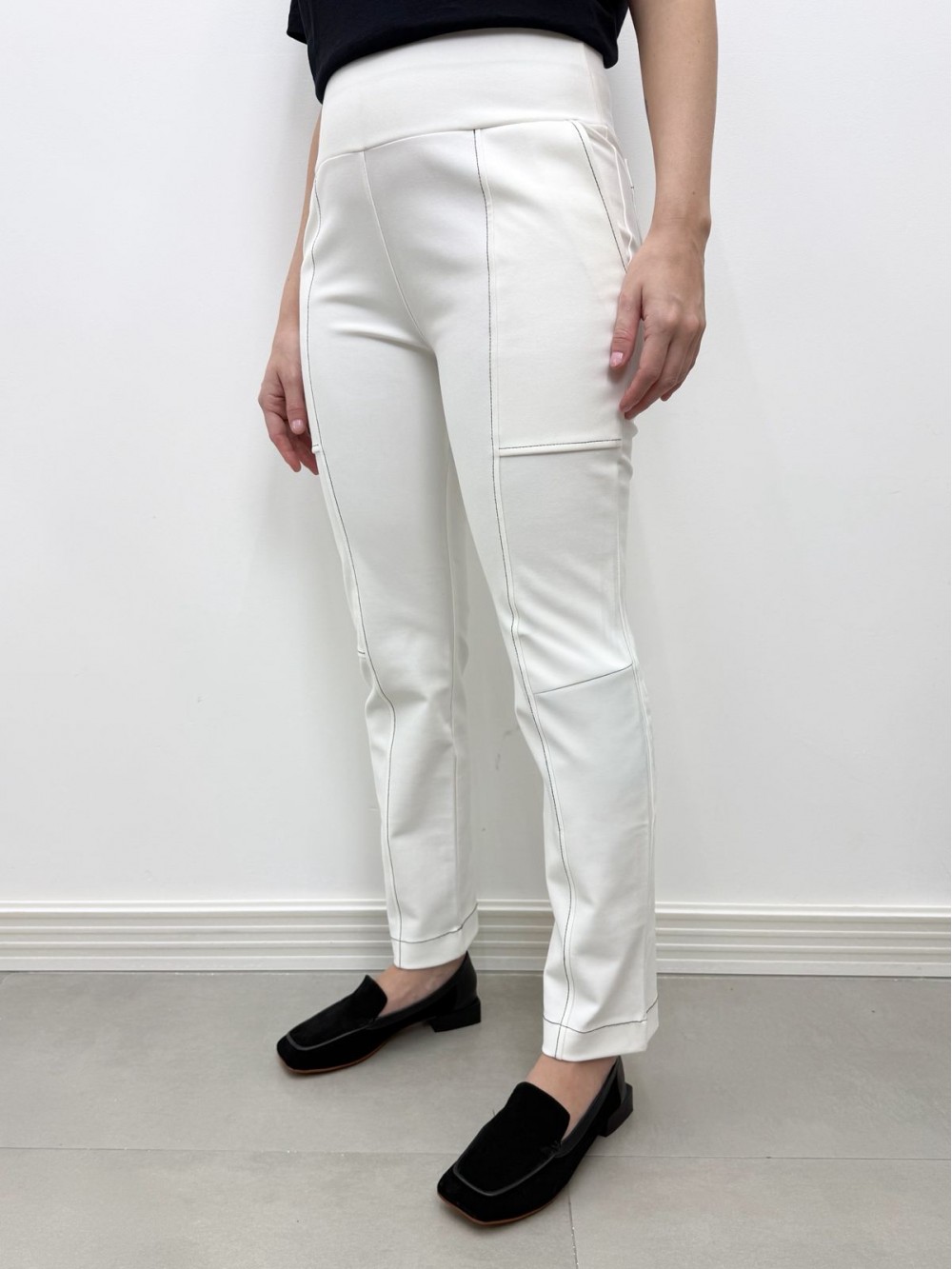 NOVO Calça New Marluce Malha Encorpada off-white c/ pesponto preto