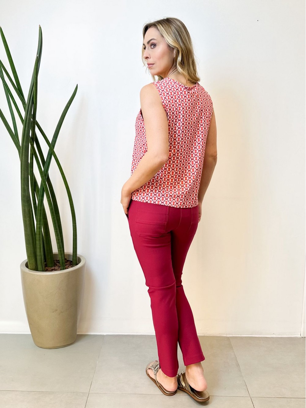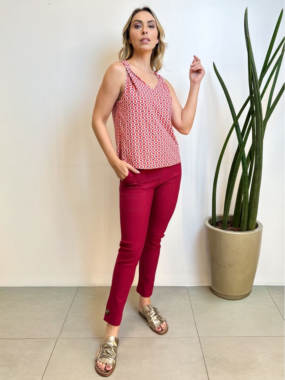 Calça New Violeta Malha Encorpada CEREJA
