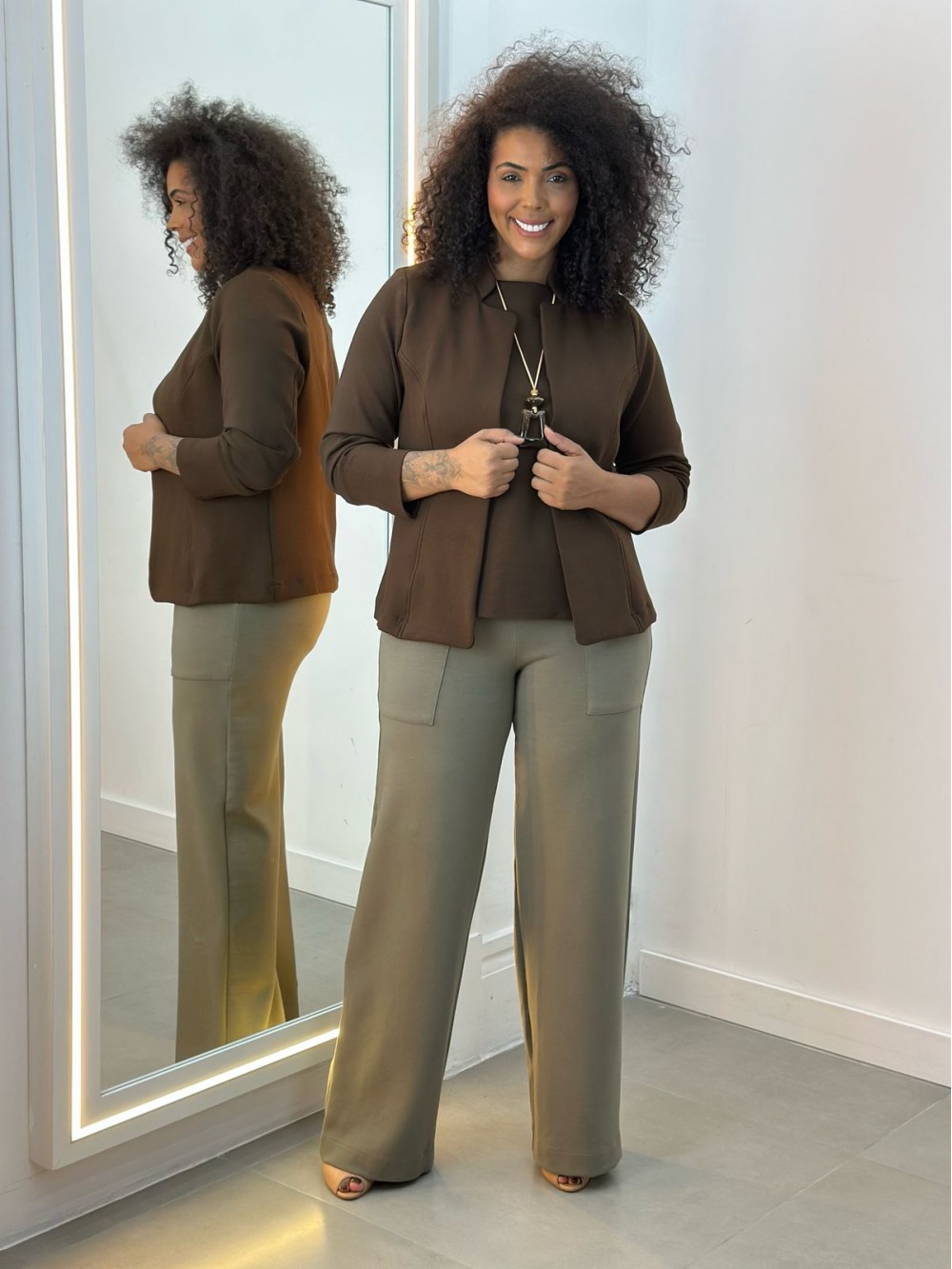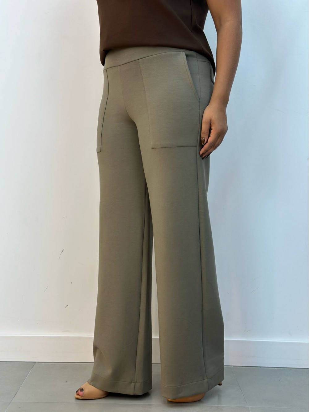 Calça Zelma Malha levemente Encorpada caqui