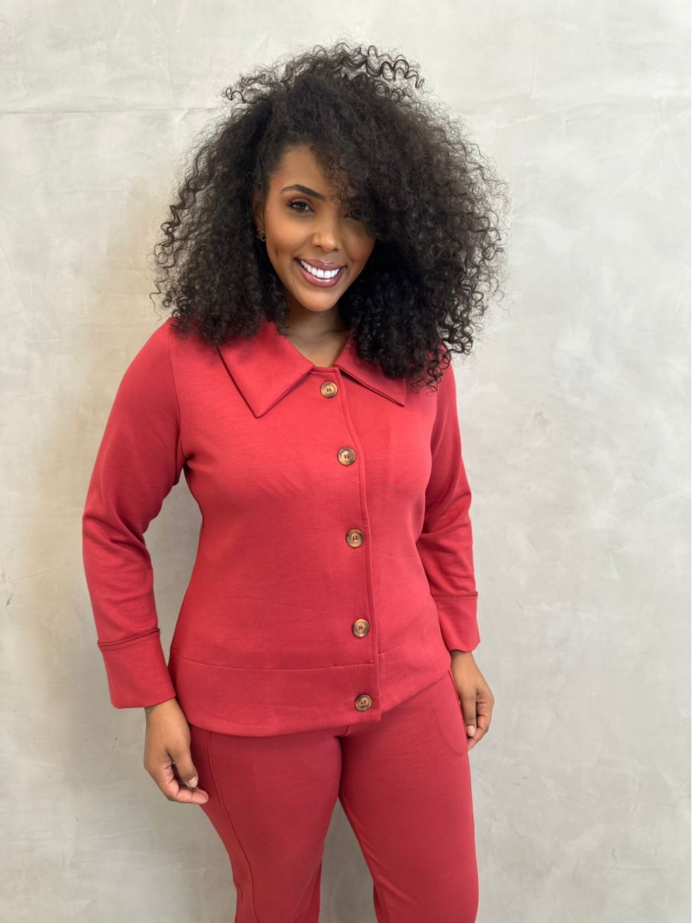 casaco Liziane MALHA LEVEMENTE Encorpada carmim