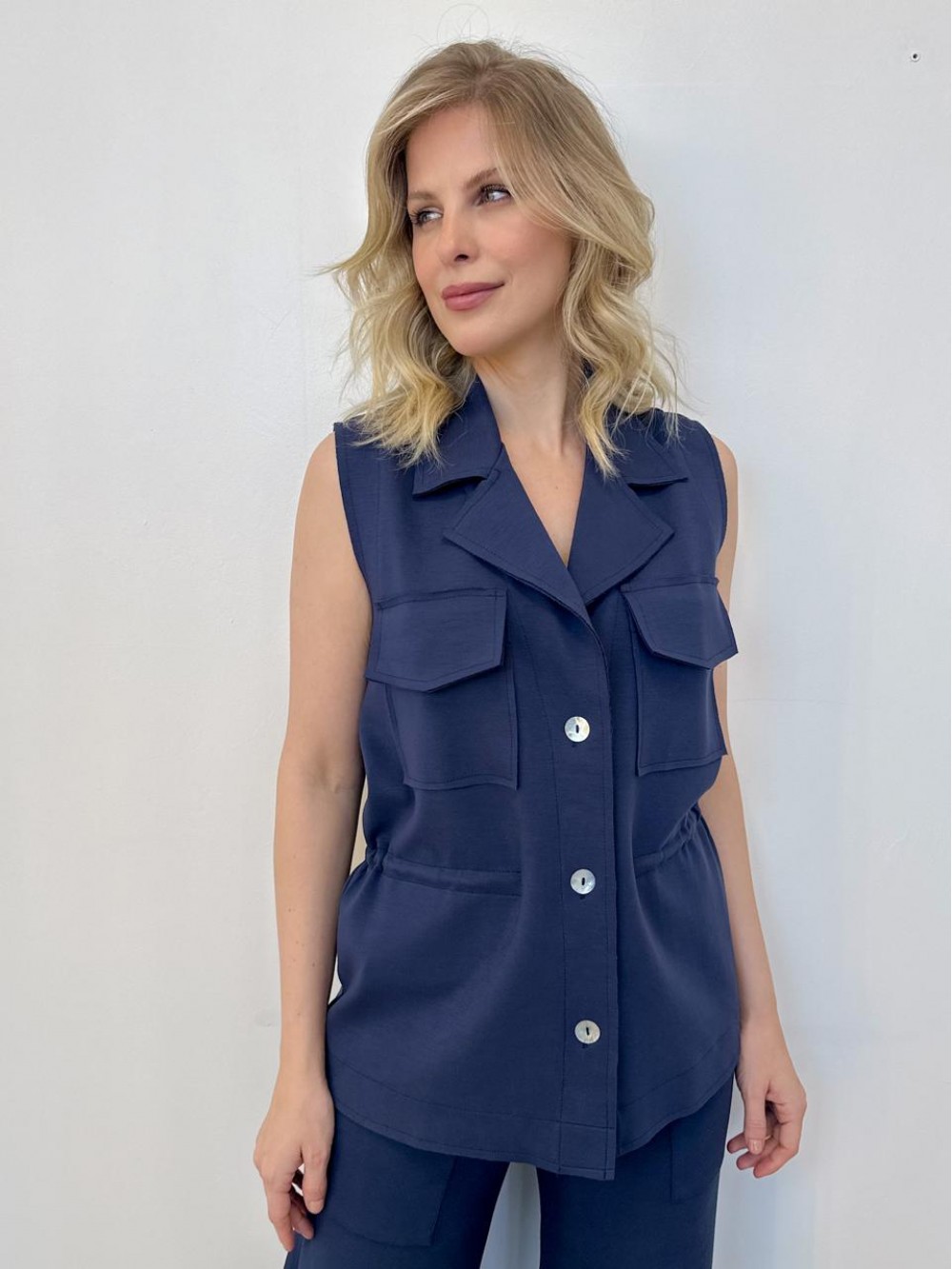 Colete lúcia mALHA LEVEMENTE ENCORPADA marinho