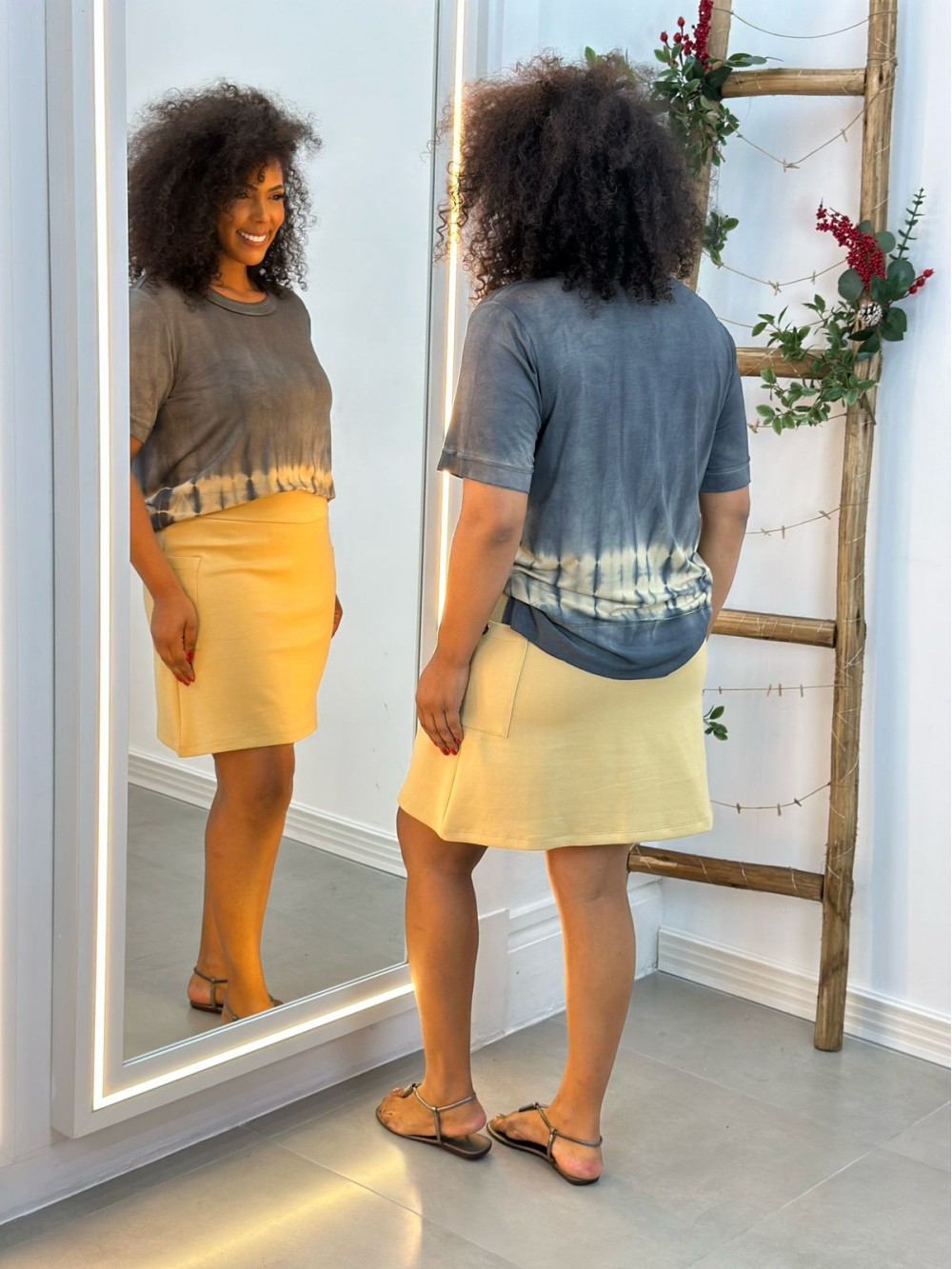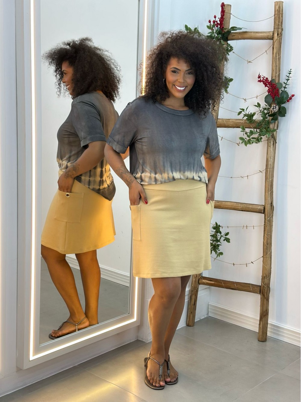 Shorts Saia Betina Malha Levemente ENCORPADA camelo
